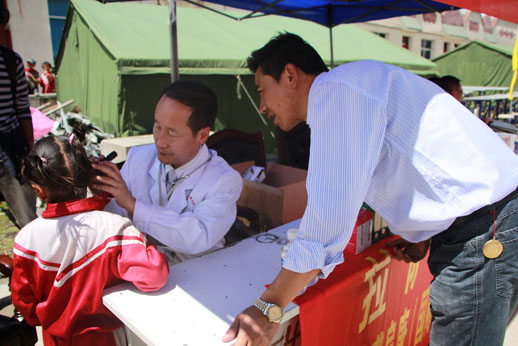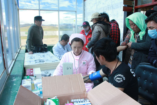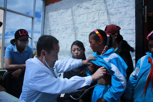 7月9早上9點,由西藏阜康(國際)健康體檢中心、西藏阜康醫(yī)院心腦血管分院義診隊的醫(yī)護人員帶上價值3000余元的藥品,從拉薩啟程。來到位于當(dāng)雄縣最遠的烏瑪鄉(xiāng)第二中心小學(xué),并于第二天趕到位于當(dāng)雄縣海拔最高的納木湖鄉(xiāng)中心小學(xué),分別為這兩所學(xué)校的師生進行免費體檢。