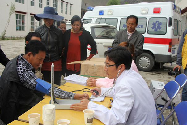 對于過為尼木縣鄉(xiāng)村小學(xué)老師們的體檢,董發(fā)善醫(yī)生說:“大部分老師都患有血管神經(jīng)性頭疼和不同程度的胃病和膽囊疾病。這是由于在鄉(xiāng)村學(xué)校中,老師們工作繁忙,經(jīng)常忘記吃飯或者到了吃飯的時候就湊合吃幾片風干肉,喝幾杯酥油茶。這是造成鄉(xiāng)村老師腸胃和膽囊疾病的原因。此外,由于老師們經(jīng)常站著講課,腰椎疾病的患病率比其他行業(yè)的要高。”在體檢的同時,醫(yī)護人員還向老師們發(fā)放了常見疾病預(yù)防知識的宣傳材料。