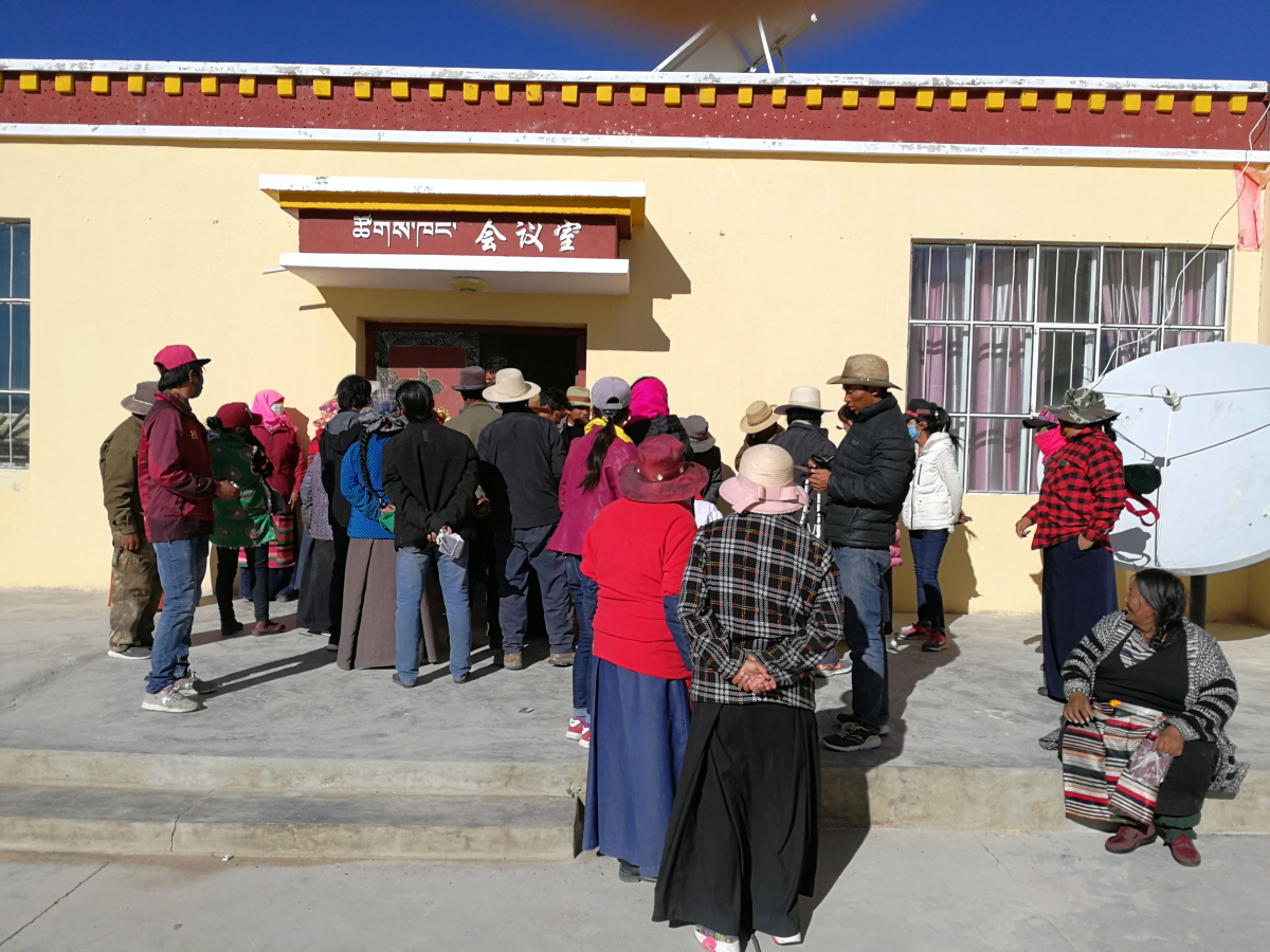 ●達革吉縣 · 革吉鎮(zhèn) · 會議室外等候篩查的群眾