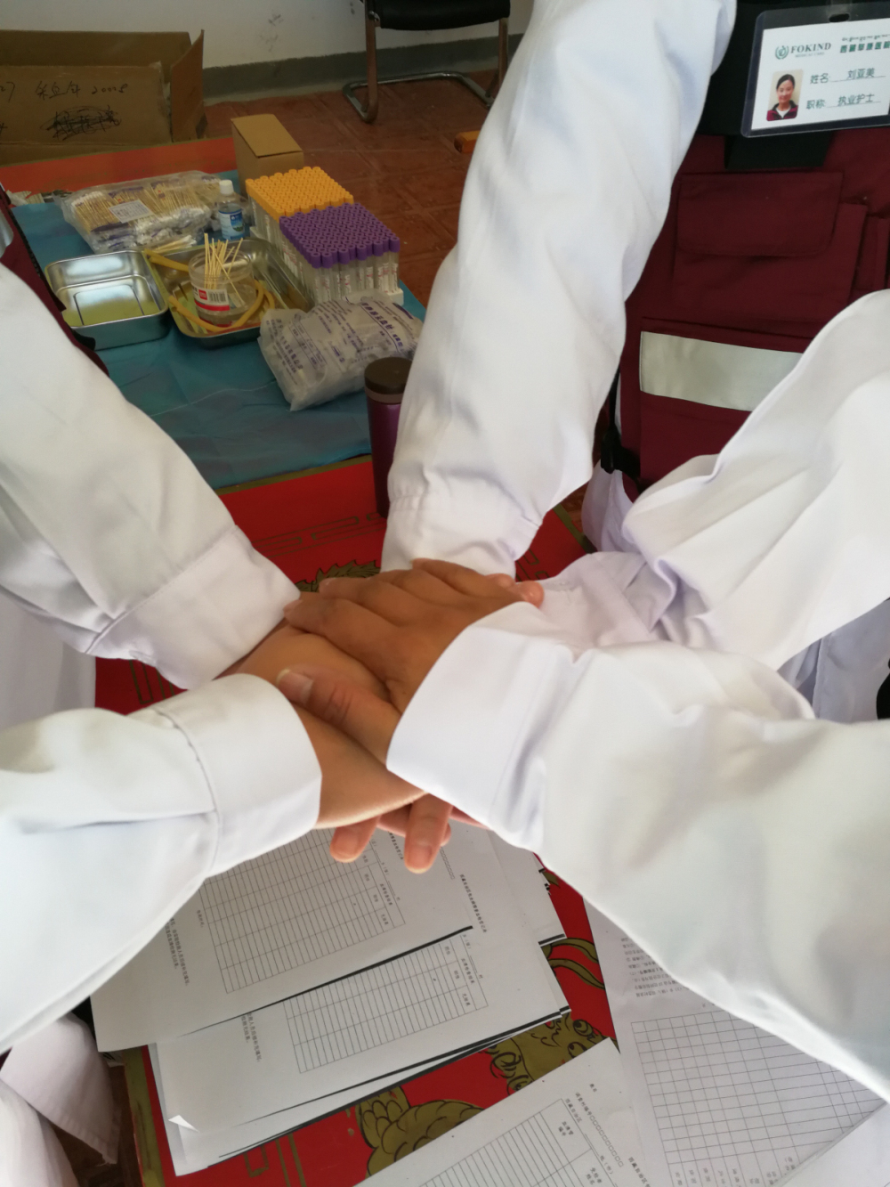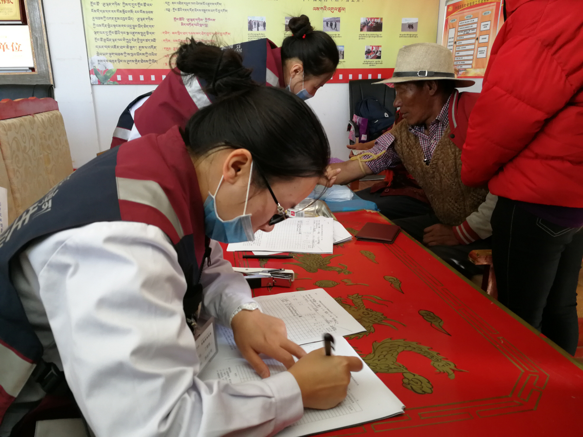前來檢查的群眾有很多,配合我們工作的還有三位當地衛(wèi)生院的小姑娘,她們主要負責登記和信息錄入,由于檢查群眾太多,她們的桌子被圍得水泄不通,但她們始終面帶微笑,一絲不茍地小心翼翼登記,生怕工作出現紕漏。