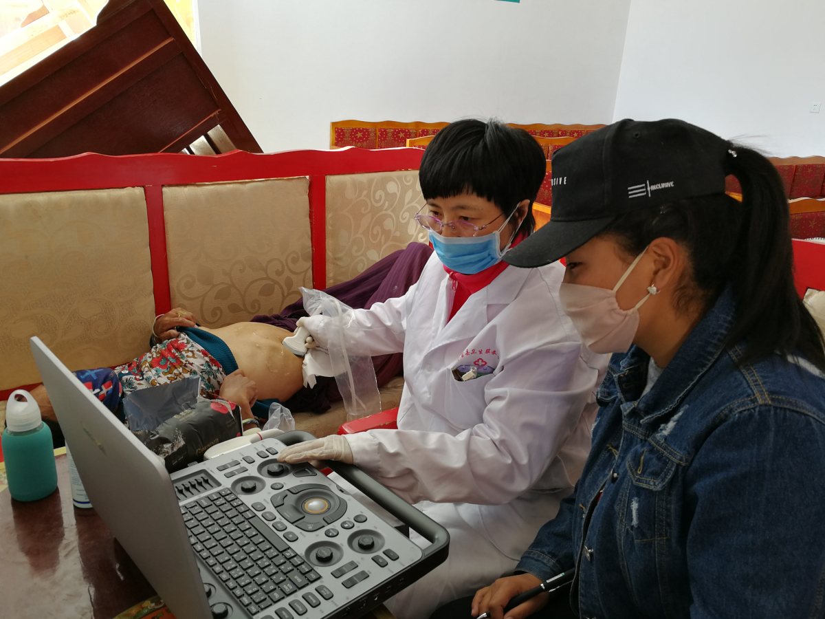 劉冬梅醫(yī)生和格桑拉吉被分到一組,負責B超檢查,在這里大部分群眾不會漢語,格桑拉吉除了要負責B超檢查、做錄入還要負責翻譯工作。遵照黨委書記王斌同志的指示,劉冬梅醫(yī)生除了要高質量地完成政府安排的肝臟B超檢查外,還要額外為群眾檢查膽、腎臟,這無疑極大地增加了她的工作量。在工作中的她兢兢業(yè)業(yè),一絲不茍,那專注的神情,是我見過的最美的樣子。