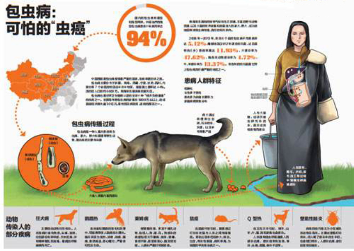 深夜,我查閱網站資料了解包蟲病的危害性:包蟲病號稱“蟲癌”,一旦發(fā)病肝、肺、腦及骨骼等幾乎所有器官和組織都會損害。醫(yī)學統(tǒng)計顯示:70%的泡蟲型包蟲病患者在5年內死亡,10年內死亡率超過90%。