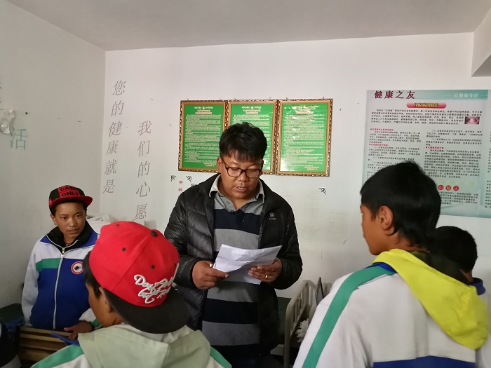 嘎瑪石珍,初二二班班主任,她所在的班級有42名學(xué)生,三分之二的學(xué)生為住校生,今天有39名學(xué)生到校進(jìn)行體檢篩查。據(jù)嘎瑪石珍老師介紹,學(xué)校很重視學(xué)生的衛(wèi)生宣傳教育工作,班主任在每周班會上都會檢查學(xué)生的手、腳、脖子以及衣服的衛(wèi)生情況,住校的學(xué)生會在老師的監(jiān)督下每周洗澡、洗衣服,學(xué)校政教處、團委也會不定期抽查。但是另一部分走讀生卻不太好監(jiān)督,雖然經(jīng)常教育他們,但仍有一部分同學(xué)不講衛(wèi)生,不按時洗澡,體味刺鼻。