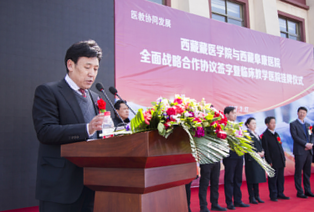 醫(yī)教協(xié)同發(fā)展,共促百姓健康。2017年2月17日下午15時(shí)30分,西藏藏醫(yī)學(xué)院與西藏阜康醫(yī)院全面戰(zhàn)略合作協(xié)議簽字暨臨床教學(xué)醫(yī)院掛牌儀式在西藏阜康醫(yī)院有限公司婦產(chǎn)兒童分院隆重舉行。