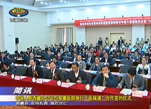 西藏阜康醫(yī)院與中國人壽保險股份有限公司西藏自治區(qū)分公司近日舉行了“醫(yī)保通”系統(tǒng)服務(wù)合作簽約儀式。