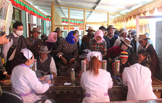 9月25日,西藏阜康醫(yī)藥公司的八名優(yōu)秀醫(yī)護(hù)人員從拉薩出發(fā),在經(jīng)歷了4個(gè)小時(shí)的路程后到達(dá)郭尼村,義診組成員忍受高寒缺氧所帶來的不適,在第一時(shí)間開始了“問診和送醫(yī)送藥活動”,義診組根據(jù)村群眾黨員不同的看病需求,帶去了多種藥品免費(fèi)發(fā)給病情需要的牧民。在義診現(xiàn)場,醫(yī)務(wù)人員認(rèn)真進(jìn)行檢查,耐心解答他們提出的問題,為他們提出具體的治療方案;醫(yī)護(hù)人員為當(dāng)?shù)啬撩駛儨y量血壓,并免費(fèi)發(fā)放了家庭常備藥品的各種宣傳資料。讓當(dāng)?shù)啬撩癯浞窒硎艿椒奖憧旖莸娜嬷艿降尼t(yī)療服務(wù),為牧民帶去健康的同時(shí)也帶去了關(guān)愛。
