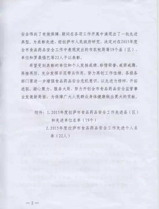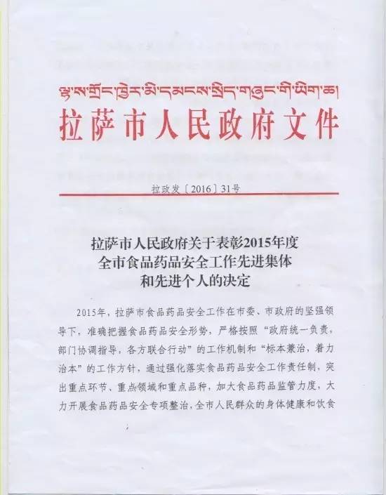 本次會議還就2015年度在全市食品藥品安全工作中表現(xiàn)突出的市農(nóng)牧局等19個縣(區(qū))、單位給予了表彰。西藏阜康醫(yī)藥發(fā)展有限公司也因在2015年食品藥品監(jiān)督管理工作中表現(xiàn)突出榮獲表彰并獲得“2015年全市食品藥品安全工作先進集體”榮譽稱號。劉瀟瀟總經(jīng)理代表阜康醫(yī)藥發(fā)展有限公司接受了本次表彰。她表示阜康醫(yī)藥發(fā)展有限公司能夠獲得本次表彰是整個阜康的驕傲,在今后的工作中我們一定會珍惜榮譽,再接再厲,充分發(fā)揮示范帶頭作用,努力再創(chuàng)工作佳績,為西藏食品藥品安全作出自己的貢獻。
