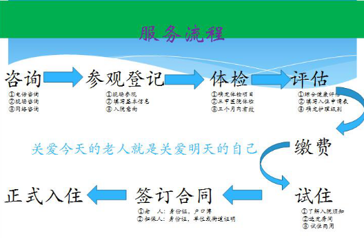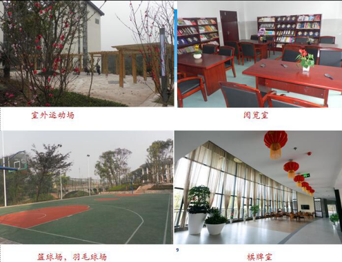 室內(nèi)配套設(shè)施:套房?jī)?nèi)彩電、空調(diào)、電話、獨(dú)立衛(wèi)生間、熱水一應(yīng)俱全。室內(nèi)外的老年活動(dòng)中心配有健身廣場(chǎng)、閱覽室、棋牌室等。院內(nèi)設(shè)有食堂餐廳。服務(wù)宗旨:“老人至上,服務(wù)第一” !工作理念:“老人的要求,我們的追求” 。服務(wù)準(zhǔn)則:“服務(wù)質(zhì)量?jī)?yōu)質(zhì)化、飲食搭配營(yíng)養(yǎng)化、文化生活多樣化、健身活動(dòng)經(jīng)?;?rdquo; 。