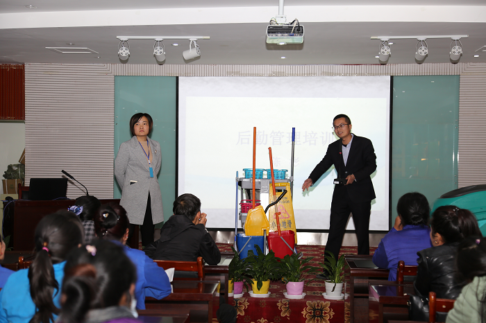 培訓最后環(huán)節(jié),由后勤保障部對所有參會的保潔人員進行現(xiàn)場演示,再次對保潔工具車的配置和掃地機的使用方法進行了詳細的講解,確保每位保潔人員都會熟練使用,達到衛(wèi)生標準。