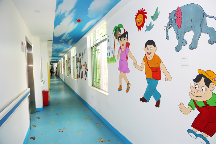 近日,隨著醫(yī)院的改造升級,兒科病房一改往日單調(diào)刻板的面貌,變身童趣十足的游樂園。整個科室以兒童喜愛的鮮亮色彩作為主色調(diào),并增添了許多人性化設計,將原來白色墻面豐富為彩色亮麗、充滿童趣的墻體,走廊處畫上了各類卡通圖案,營造了溫馨可愛的氛圍,小朋友們就診時如同置身于卡通樂園,充分體現(xiàn)了現(xiàn)代化??漆t(yī)院室內(nèi)設計的人文理念。