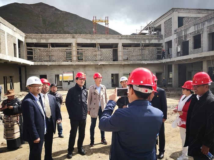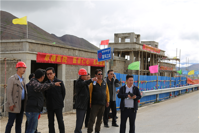 2018年了8月9日,受阜康邀請,西藏自治區(qū)政協(xié)副主席、區(qū)工商聯(lián)主席、區(qū)總商會(huì)會(huì)長阿沛·晉源,拉薩大昭寺管家洛桑,西藏自治區(qū)社會(huì)科學(xué)院原處長次旺仁青,西藏阜康醫(yī)療股份有限公司黨委書記、董事長王斌,西藏阜康醫(yī)療股份有限公司黨委副書記、副總經(jīng)理陳彬,西藏阜康醫(yī)院名譽(yù)院長嘎布,阜康生殖醫(yī)學(xué)中心實(shí)驗(yàn)室主任劉鋒,阜康體檢中心主檢師瓊瑪,阿沛·晉源主席秘書旦增一行早上8點(diǎn)從拉薩出發(fā),一路顛簸馳騁于下午2點(diǎn)50分許抵達(dá)那曲地區(qū)嘉黎縣夏瑪鄉(xiāng)。聽說晉源主席要來視察衛(wèi)生院的建設(shè)工作,嘉黎縣縣長吾金不顧受傷的左腿帶領(lǐng)當(dāng)?shù)馗刹咳罕娫缭绲群蛟谙默斷l(xiāng)衛(wèi)生院建設(shè)現(xiàn)場。