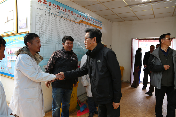 阿沛·晉源主席和施工人員一一握手慰問,囑咐他們在施工過程中一定注意安全!要把衛(wèi)生院建成標(biāo)桿衛(wèi)生院,造福夏瑪鄉(xiāng)農(nóng)牧民群眾!看完即將竣工的衛(wèi)生院他又來到老舊的衛(wèi)生院看望正在工作的醫(yī)護(hù)人員,與醫(yī)護(hù)人員和患者親切握手交談,囑咐他們一定多加學(xué)習(xí)和培訓(xùn),用心工作,搬到新的衛(wèi)生院后一定不要辜負(fù)阜康全體員工的期望!接著晉源主席也指示阜康要繼續(xù)幫助衛(wèi)生院,切實(shí)提高衛(wèi)生院工作人員醫(yī)療水平,將夏瑪鄉(xiāng)衛(wèi)生院打造成全縣乃至全區(qū)的標(biāo)桿衛(wèi)生院!