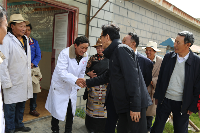 在鄉(xiāng)鎮(zhèn)道路旁邊的帳蓬里吃完自助餐后,吾金縣長向晉源主席匯報(bào)了嘉黎縣的工作和夏瑪鄉(xiāng)衛(wèi)生院的建設(shè)情況。吾金縣長說在自治區(qū)黨委、政府和區(qū)工商聯(lián)發(fā)出“百企幫百村”的號召不久,阜康黨委書記王斌就帶著公司領(lǐng)導(dǎo)一起來夏瑪鄉(xiāng)實(shí)地考察,根據(jù)夏瑪鄉(xiāng)衛(wèi)生條件和阜康的醫(yī)藥行業(yè)優(yōu)勢,在縣委、縣政府的建議下確定了以“醫(yī)療扶貧為主、產(chǎn)業(yè)扶貧為輔”的對口幫扶路線。決定由阜康投資500萬元為夏瑪鄉(xiāng)修建一所現(xiàn)代化的衛(wèi)生院,同時(shí)另外出資100萬元對嘉黎縣人民醫(yī)院進(jìn)行信息化改造升級。