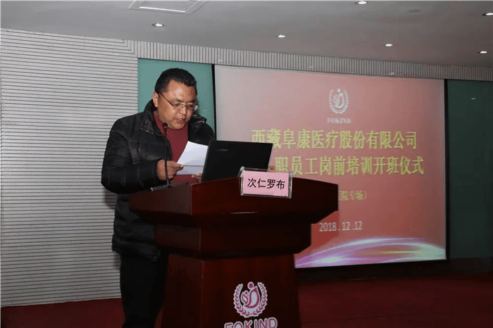 西藏玉拓醫(yī)療健康養(yǎng)老產(chǎn)業(yè)有限責(zé)任公司總經(jīng)理次仁羅布為本次培訓(xùn)活動(dòng)致辭:“西藏阜康康復(fù)醫(yī)院是一家康復(fù)??漆t(yī)院,也是‘玉拓醫(yī)療’和‘阜康醫(yī)療’聯(lián)合創(chuàng)辦的醫(yī)院,我相信我們兩家公司一定會(huì)精誠(chéng)合作,將康復(fù)醫(yī)院發(fā)展成為技術(shù)一流、服務(wù)一流的現(xiàn)代化醫(yī)院!”