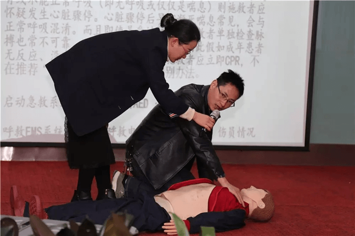 其中“消防知識(shí)”和“心肺復(fù)蘇:BLS”等課程的授課講師不但進(jìn)行了理論知識(shí)的講解,而且?guī)ьI(lǐng)各位學(xué)員進(jìn)行了實(shí)踐演練。