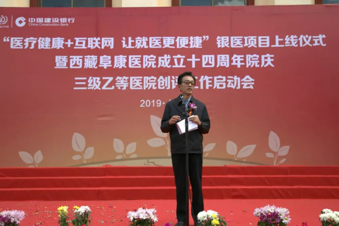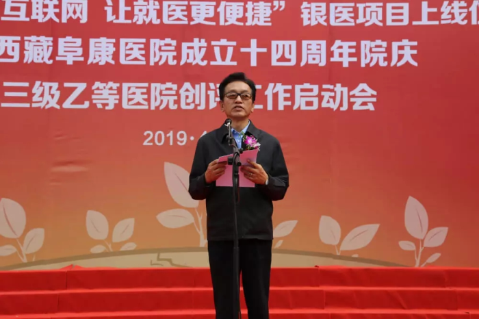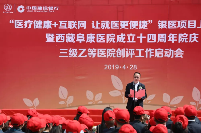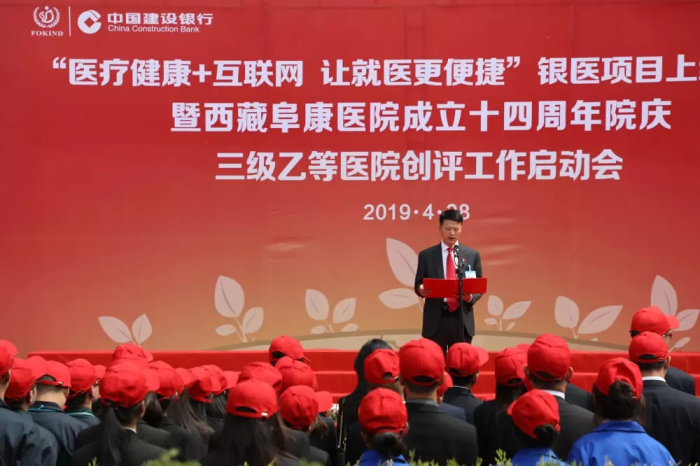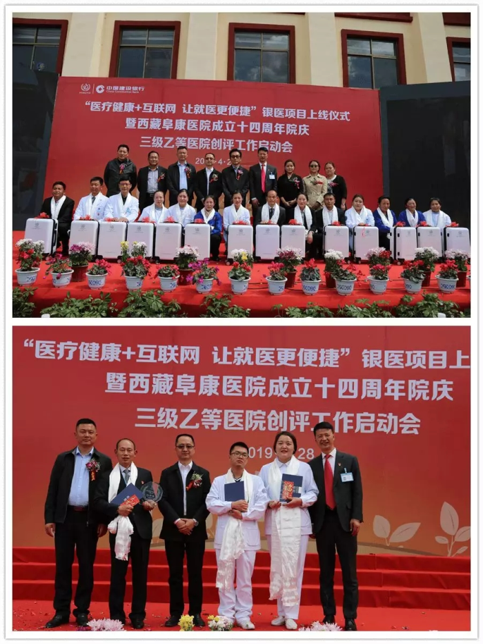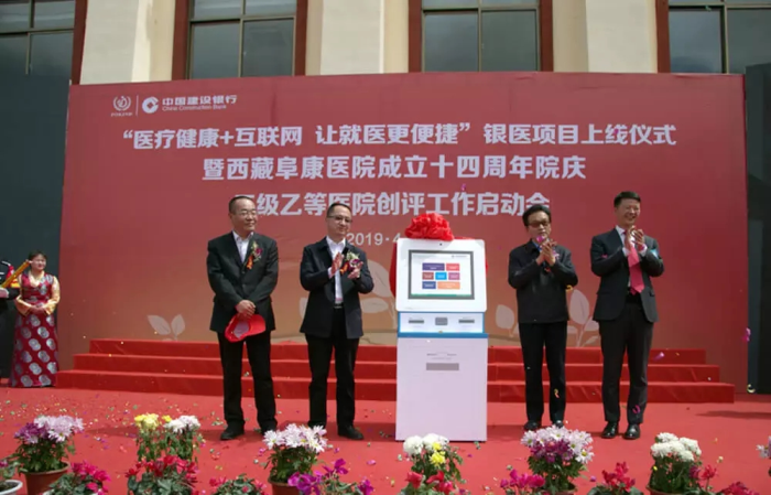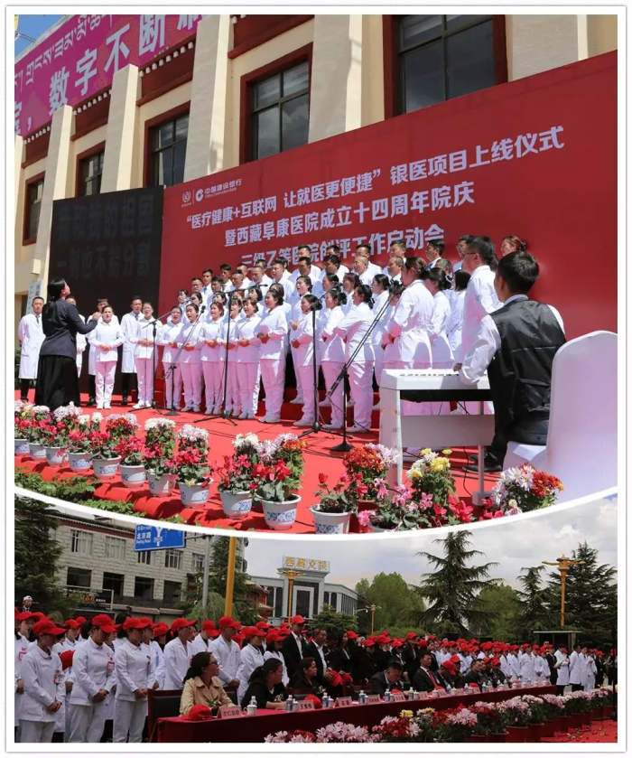 春日的圣城拉薩陽(yáng)光明媚,生機(jī)盎然。2019年4月28日,注定是一個(gè)不平凡的日子!下午15時(shí),來(lái)自自治區(qū)政府部門(mén)、各大金融機(jī)構(gòu)、科技教育單位的12位嘉賓和阜康醫(yī)院的廣大醫(yī)務(wù)人員匯聚一堂,共同見(jiàn)證建設(shè)銀行西藏分行、西藏阜康醫(yī)院“醫(yī)療健康+互聯(lián)網(wǎng),讓就醫(yī)更健康”銀醫(yī)項(xiàng)目上線暨阜康醫(yī)院成立十四周年院慶三級(jí)乙等醫(yī)院創(chuàng)評(píng)工作正式啟動(dòng),標(biāo)志著在雪域高原上成功走過(guò)十四年光輝歷程的阜康醫(yī)院,正在一個(gè)全新的起點(diǎn)上承載著“健康西藏”的光榮使命再次揚(yáng)帆遠(yuǎn)航、整裝出發(fā)!