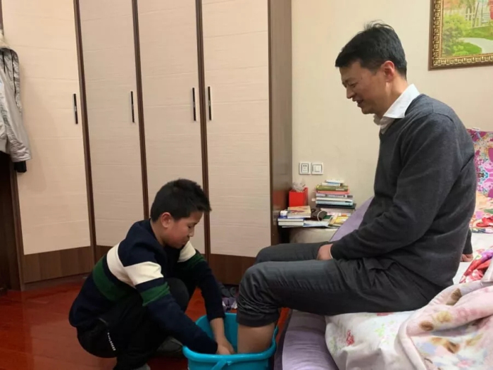 每逢過(guò)節(jié)回家,王斌和劉瀟瀟到家后第一件事就是給自己的父母打一盆熱水,為父母洗腳,在孩子的面前以身作則、言傳身教。