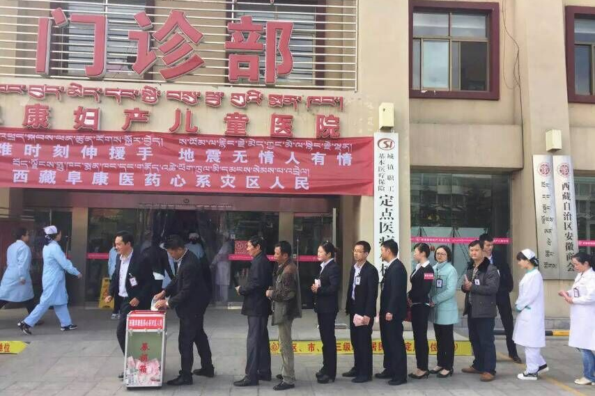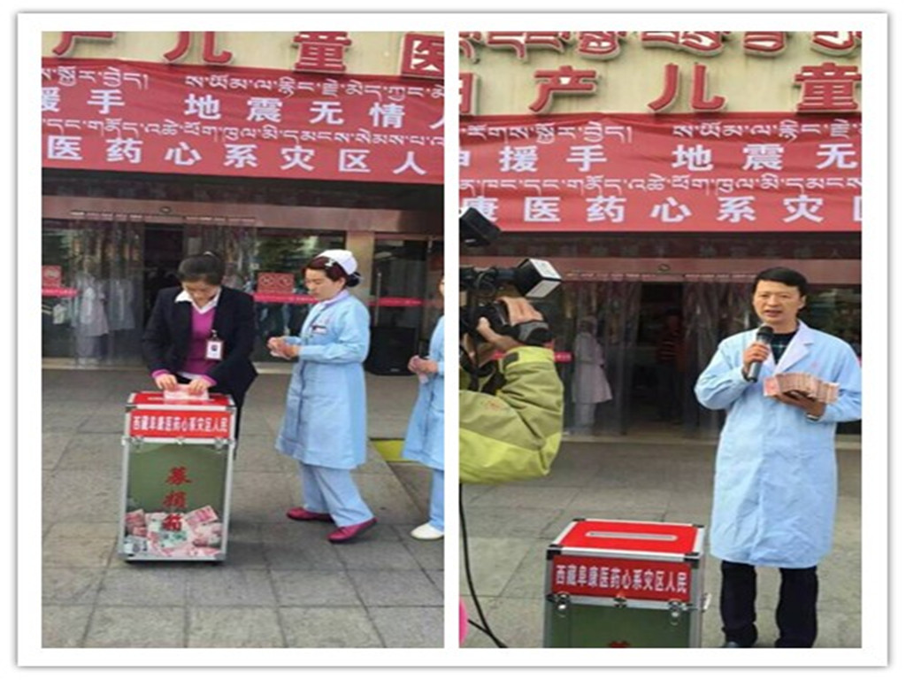 在得知尼泊爾地震后第一時(shí)間,阜康醫(yī)藥發(fā)展有限公司攜西藏阜康醫(yī)院、阜康醫(yī)院婦產(chǎn)兒童分院、阜康醫(yī)院心腦血管分院、阜康(國際)健康體檢中心以及旗下各大藥房舉行了災(zāi)區(qū)捐款儀式。