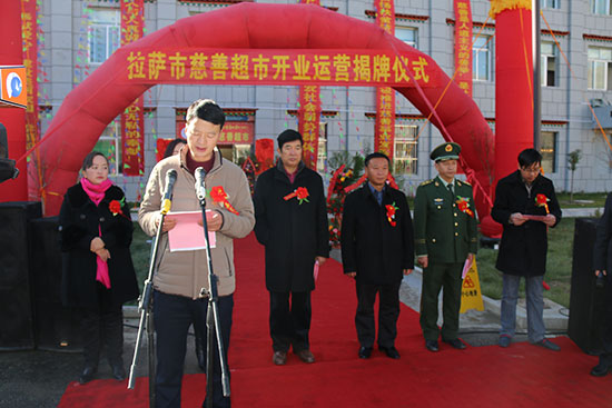 在本次拉薩市慈善超市開業(yè)暨拉薩市慈善捐助中心成立揭牌儀式上,我院王斌董事長代表阜康集團,以雪域天使基金會的名義,向該慈善超市捐贈了10萬元,同時,王斌董事長表示,慈善超市的建立,是一件可喜可賀的事,是國家民政部、我市民政局關心百姓的體現(xiàn),它以一種新的模式,為需要幫助的百姓提供多元化的服務。這是一項匯聚愛心、由政府推動、社會參與、群眾受益的惠民工程,同時為我們個人、企業(yè)和社會組織搭建了一個物品和公益項目的對接平臺。