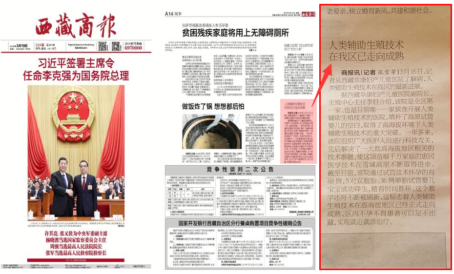 據(jù)西藏阜康婦產(chǎn)兒童醫(yī)院副院長、生殖中心主任李君介紹,該院是一家獲準開展人類輔助生殖技術(shù)的醫(yī)院,取得了高海拔環(huán)境下人類輔助生殖技術(shù)的重大突破。一年多來,該院組織廣大醫(yī)護人員進行科技攻關(guān),先后解決了一大批高海拔地區(qū)相關(guān)的技術(shù)難題,使這項造福千萬家庭的惠民醫(yī)學技術(shù)在雪域高原不斷取得進步。截至目前,該院通過試管技術(shù)懷孕的有88例,5對雙胞胎、36例單胎寶寶成功降生,隨著時間推移,這個數(shù)字還將不斷被刷新,這標志著人類輔助生殖技術(shù)在高海拔地區(qū)已經(jīng)正式走向成熟,區(qū)內(nèi)不孕不育患者可以足不出藏,實現(xiàn)就近就診治療。