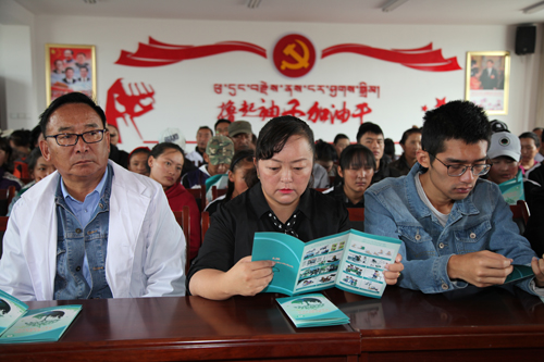 圖為自治區(qū)殘聯(lián)黨組成員、副理事長拉姆卓瑪(中)參加“殘疾預(yù)防進(jìn)社區(qū)”活動(dòng)