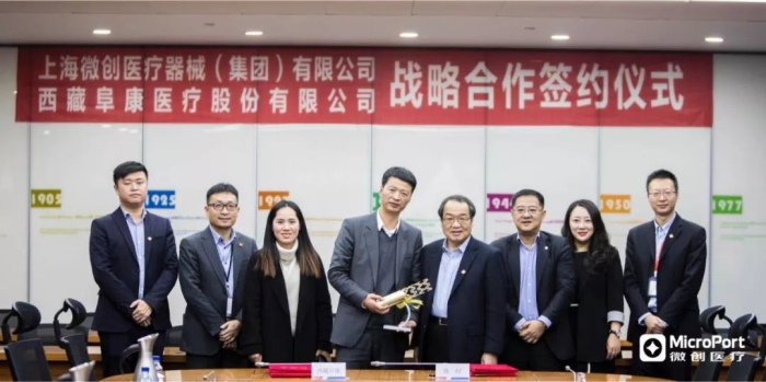 2018年12月17日,上海微創(chuàng)醫(yī)療器械(集團)有限公司(以下簡稱“微創(chuàng)®”)與西藏阜康醫(yī)療股份有限公司(以下簡稱“西藏阜康醫(yī)療”)戰(zhàn)略合作協(xié)議簽署儀式在上海舉行。微創(chuàng)®董事長兼首席執(zhí)行官常兆華博士、首席營銷官彭博、全國冠脈營銷高級副總裁蔣磊會見了西藏阜康醫(yī)療黨委書記、董事長王斌一行,并共同出席協(xié)議簽署儀式。