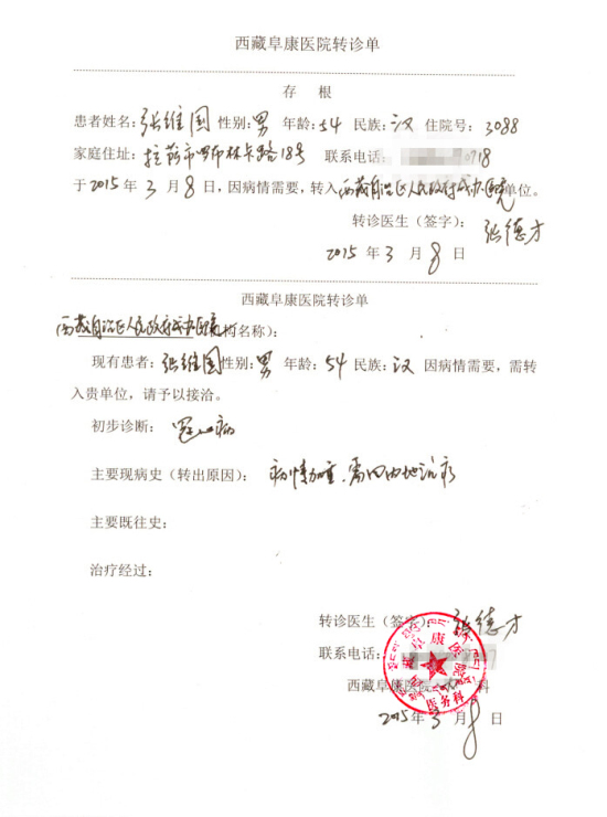 1、凡通過西藏阜康醫(yī)院轉(zhuǎn)診到西藏自治區(qū)人民政府成都辦事處醫(yī)院就診的患者,需前往阜康醫(yī)院領(lǐng)取“轉(zhuǎn)診單”,或在線下載,蓋阜康醫(yī)院公章后,持“轉(zhuǎn)診單”前往成辦醫(yī)院就診;
