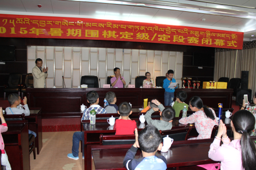 7月28日, 拉薩市2015年暑期圍棋定級/定段賽頒獎儀式在拉薩棋院三樓會議室召開,出席嘉賓有拉薩棋院院長王斌、拉薩棋院秘書長及職業(yè)圍棋隊(duì)教練陳盈女士、拉薩棋院圍棋部副主任趙鈞、棋院老師陳學(xué)滸及本次參賽的學(xué)生和家長。首先王斌院長代表拉薩棋院歡迎大家的到來。從今年4月26日拉薩棋院成立到現(xiàn)在不到半年的時間,就已經(jīng)在5月1日、2日成功的舉辦了“2015春季‘阜康杯’拉薩市少兒圍棋定級賽”,并得到了各界的大力支持和認(rèn)同。為了改善棋手們的學(xué)棋環(huán)境,棋院又投資數(shù)萬元購置棋桌、棋盤等設(shè)施,棋院在每間教室的休息區(qū)均安裝了WiFi。據(jù)王斌院長介紹,棋院準(zhǔn)備接下來培養(yǎng)更多的圍棋老師到各大幼兒園、小學(xué)教授圍棋,待辦學(xué)條件成熟還可能增加書法等項(xiàng)目,讓西藏的適齡小孩得到更多的琴棋書畫的熏陶及教育。