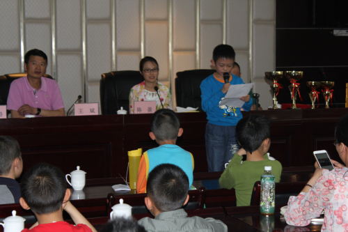 最后由小棋手代表許蘇陽發(fā)言,首先感謝了為拉薩棋院辛勤奔波的王斌院長,感謝拉薩棋院為他們搭建了這樣一個良好的學(xué)習(xí)平臺與機(jī)會,是老師交給了他圍棋這一項(xiàng)本領(lǐng),是老師給了這次比賽的機(jī)會,同時感謝父母支持學(xué)圍棋,感謝叔叔阿姨對我們的鼓勵與支持。黑白世界,精彩人生,學(xué)習(xí)圍棋的好處很多,大大增加了小棋手的信心,它能讓小棋手們平靜下來細(xì)細(xì)思考,能讓小棋手們學(xué)會等待、改掉急躁的壞毛病。
