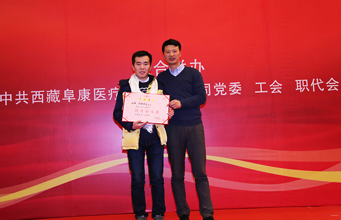 據(jù)醫(yī)院評優(yōu)選先方案,經(jīng)過民主推選和綜合考核考評,西藏阜康醫(yī)院2016年共評出10個(gè)先進(jìn)科室、47名優(yōu)秀員工、11名優(yōu)秀管理人員、3名優(yōu)秀專家、1項(xiàng)優(yōu)秀論文獎(jiǎng),1項(xiàng)個(gè)人榮譽(yù)獎(jiǎng),2項(xiàng)特殊貢獻(xiàn)獎(jiǎng)。