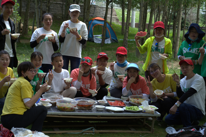 到達(dá)公園后,大家開始支鍋,洗菜的洗菜、烹飪的烹飪、玩兒的玩兒……好不熱鬧。不多久,一頓饕餮大宴就上桌了。在大快朵頤之后大家開始做活動,拾垃圾、踢毽子、吹氣球等,一系列既環(huán)保又能體現(xiàn)團(tuán)隊協(xié)作比賽活動拉近了所有參與者的距離,最后還為所有參與者贈送了小禮品。大家在歡歌笑語中享受到了一頓豐盛的“綠色大餐”。