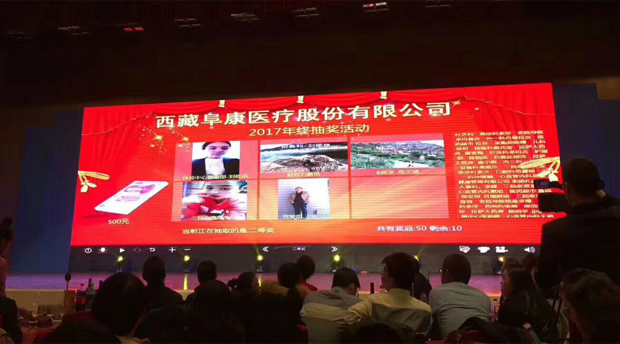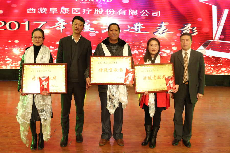 2018年1月10日,西藏阜康醫(yī)療股份有限公司新年團拜會在拉薩洲際酒店舉行,下午四點來自西藏阜康醫(yī)院、婦產(chǎn)兒童分院、心腦血管分院、健康體檢中心,阜康大藥房、超市的員工陸續(xù)來到會場。下午五點,主持人劉連福院長宣布會議正式開始,場內(nèi)音樂響起,董事長王斌帶領(lǐng)醫(yī)院領(lǐng)導(dǎo)和特邀嘉賓入場,會場立刻響起雷鳴般的掌聲和歡呼聲。