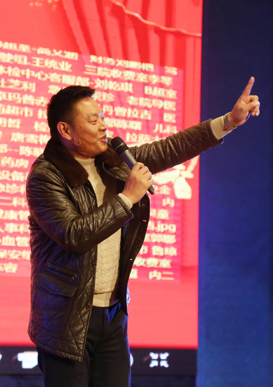隨后,董事長王斌走上講臺飽含激情地說“我之存在,因為有你”,并向所有來賓鞠躬致謝。董事長王斌講述了阜康發(fā)展史、阜康人的奮斗史,從2005年的47名員工到現(xiàn)在的1024名員工,并再次感謝一路伴隨阜康成長的所有人,還指出2018年是阜康發(fā)展史上很關(guān)鍵的一年,要早計劃、早安排、早部署,要以十九大精神為指導(dǎo),堅持科學(xué)發(fā)展觀,早日把阜康建設(shè)成為現(xiàn)代化醫(yī)院。