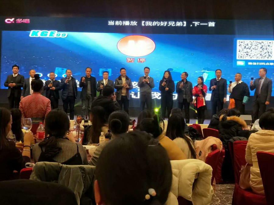 抽獎環(huán)節(jié)結(jié)束后,大家紛紛落座,晚宴正式開始,席間歡聲笑語、觥籌交錯,空氣中彌漫著幸福的味道。董事長王斌率阜康院領(lǐng)導(dǎo)集體登臺共同祝福阜康明天更輝煌,祝福各位同仁工作順利、扎西德勒!董事長王斌還為大家深情演唱了歌曲《父親》、《母親》,濃濃的思念打動了在場的每一位,總經(jīng)理陳彬也上臺高歌助興,阜康的小朋友們也不甘示弱,主動請纓為大家獻歌一首。