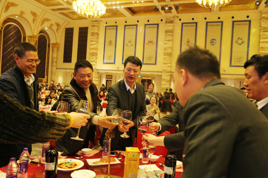 晚宴尾聲,董事長王斌邀請所有院級領(lǐng)導(dǎo)上臺共同舉杯說:“希望大家在新的一年繼續(xù)沿著創(chuàng)新的道路團結(jié)一致、規(guī)范管理、用心服務(wù),開源節(jié)流地做好自己本職和醫(yī)院的工作。我相信,在各位阜康同仁的共同努力下,2018年我們一定會保質(zhì)、保量完成工作計劃。為保障西藏自治區(qū)廣大人民群眾的身體健康做出新的更大的貢獻,促進醫(yī)院健康、持續(xù)、穩(wěn)步地向前發(fā)展,更上一層樓,再鑄新輝煌! ”