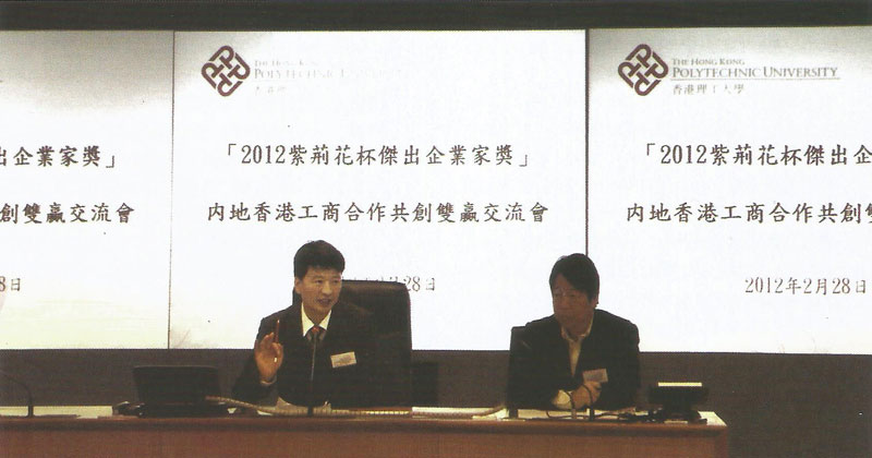 “2012年紫荊花杯杰出企業(yè)家獎”的頒獎典禮正在進行,主禮嘉賓香港特別行政區(qū)立法會主席曾鈺成先生,特邀嘉賓中央港理工大學校長唐偉章先生共同啟動了2012紫荊花杯杰出企業(yè)家獎亮燈儀式。曾鈺成先生發(fā)表了熱情洋溢的講話,他對12位中國內地的獲獎企業(yè)家表示祝賀,為此次海內外民營企業(yè)家的盛會開啟序幕。