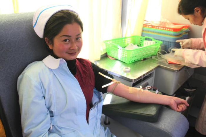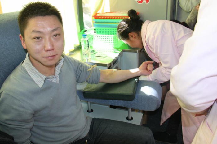 近日拉薩市血庫全線告急,血庫面臨血荒的危機。在得知這一緊急情況后王斌懂事長、劉瀟瀟總經(jīng)理立即組織阜康員工積極獻血,在阜康各位領(lǐng)導的帶領(lǐng)下,2013年1月30日他們來到阜康婦產(chǎn)兒童醫(yī)院血液中心采血點義務(wù)獻血。采血現(xiàn)場筆者看到在阜康婦產(chǎn)兒童醫(yī)院呂果梅副院長和拉薩大藥房何文秀店長的組織下大家排著整齊長隊等待獻血。筆者有幸采訪到了阜康醫(yī)院心腦血管分院內(nèi)科主任于永軍,據(jù)于主任介紹他已是多次參與獻血,阜康的員工都是很無私的,很多時候在面臨病人急需輸血而血站又缺血的情況下阜康員工就會自發(fā)組織在一起去血站為病人獻血,這種情況總是經(jīng)常出現(xiàn)。于主任告訴筆者自己獻血也是想起到一個帶頭的作用,很多人不愿獻血就是怕對身體有傷害,醫(yī)生護士積極獻血能告訴大家適當獻血不但對身體沒有害處還有利于身體健康。