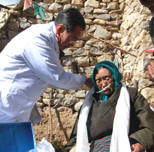 11位百歲老人有8位女性,3位男性。年齡最大的有110歲,最小的100歲。他們的居住地海拔都在3800—5000米,均為農(nóng)牧民。有三位居住在拉薩市區(qū),其中一位祖籍那曲索縣,一位林州縣,還有一位居住在柳梧區(qū)。百歲老人的健康狀況如下:十一位,除聽力、視力有所下降,個別血壓偏高外,心臟、肝腎、胃腸功能都很好,思維敏捷,記憶力都不錯,有的還能記得四、五十歲的事情。由此看來高原低氧環(huán)境或許能起到抑制人體過度氧化,從而延緩衰老的作用。