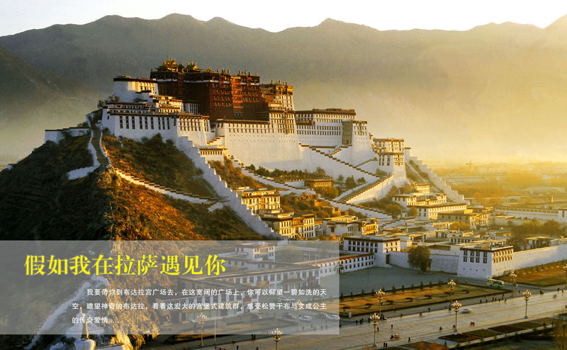 假如我在拉薩遇見(jiàn)你,我將像這座城市一樣,用明媚的陽(yáng)光溫暖你;用成熟、穩(wěn)重、寬廣的胸懷,把你擁在懷里;用古樸、神秘的妝容將你留在夢(mèng)里。