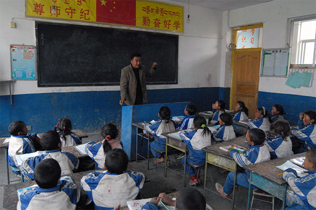 米瑪老師說,他出生在日喀則市亞東縣城,自幼家庭條件較好。自初中開始,他便先后在濟南、咸陽等內(nèi)地大中城市求學(xué),早已習(xí)慣了城市的生活和思維方式。2002年大學(xué)畢業(yè)被分配到日喀則定日縣崗嘎鎮(zhèn)東巴完小工作。