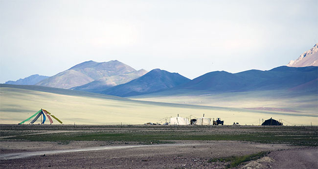 土墻里是溫暖的。掀開(kāi)厚實(shí)的繡了藏式圖案的門(mén)簾,一股暖流迎面而來(lái),主人們趕緊起身讓座,把靠火爐最近的位置給我,將火爐上熱騰騰的茶壺提來(lái)為我沏茶。當(dāng)茶壺提起時(shí),熊熊的火苗往上竄,我將冰涼的雙手伸過(guò)去,在火苗上翻轉(zhuǎn)—一此時(shí),最能感受的就是何為“家的溫暖”。主人又添了幾塊干牛屎餅,火苗再次升騰起來(lái),升騰起來(lái)的還有青草燃燒時(shí)的清香。在改則縣城的那大半年時(shí)間里,我睡覺(jué)的房間堆了許多用來(lái)供暖的牛屎餅。因空氣干燥,牛屎餅里的植物纖維散發(fā)出的草的清香也就伴我進(jìn)入了一個(gè)個(gè)甜美的夢(mèng)鄉(xiāng)。當(dāng)我給病人量了體溫、血壓,仔細(xì)詢問(wèn)病情,得出診斷起身要走時(shí),主人趕緊端了果盤(pán)讓我捎些,我道聲謝,禮貌性的拿上一兩個(gè)千果,走出門(mén)外,此時(shí)屋外正下著雪。