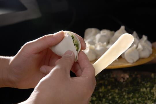 看著爺爺搟面皮會(huì)覺(jué)得很過(guò)癮,這活兒我和弟弟卻干不了。于是,爺爺會(huì)找出一個(gè)杯蓋,將面皮搟出一大張,我跟弟弟就拿著杯蓋一個(gè)一個(gè)的按,按好的面皮變成了一張一張的圓。爺爺包的餃子很好看,也很飽滿(mǎn),照著爺爺教我們的方法包出來(lái)的餃子,卻是形狀各異的。盡管這樣,我們還是會(huì)很開(kāi)心。