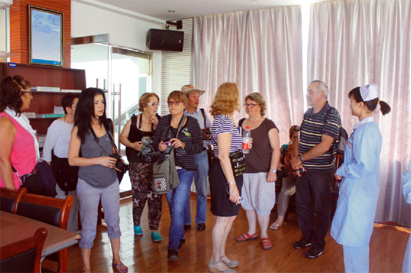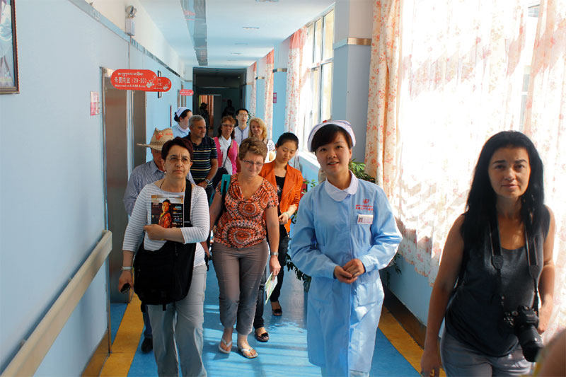 下午三點半,由董事長秘書李霞、護理部主任龍琦帶隊,參觀了嬰兒洗浴中心、ⅦP病房、自助廚房、圖書館等各項設(shè)施。據(jù)了解,來我院參觀的法國護士團隊里有部分人員曾于十年前到西藏了解過當(dāng)時的醫(yī)療條件,那時候,西藏的醫(yī)療條件落后,環(huán)境也大不如現(xiàn)在。此次參觀中,他們對于西藏醫(yī)療衛(wèi)生行業(yè)的快速發(fā)展,醫(yī)療條件的極大改善表示驚嘆,并紛紛拿起相機拍攝。