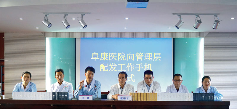 王斌董事長在配發(fā)儀式上說道:“給醫(yī)院中層領(lǐng)導(dǎo)配發(fā)手機(jī)是為了更好地聯(lián)系群眾,手機(jī)每月129元的套餐費(fèi)用由醫(yī)院出,這樣也大大降低了各科室主任、班組長的通訊費(fèi)用,希望各位在以后的工作中更好地為大家服好務(wù)”。