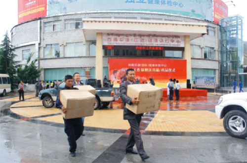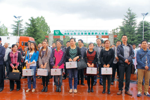 西藏阜康(國(guó)際)健康體檢中心王斌董事長(zhǎng)首先向?yàn)榇龠M(jìn)西藏和諧發(fā)展長(zhǎng)期駐村(居)的工作人員表示崇高的敬意!據(jù)了解,本次為拉薩市267個(gè)駐村(居)工作隊(duì)贈(zèng)送的小藥箱中配備了急救類、解熱鎮(zhèn)痛類、治感冒類、止咳化痰類、抗菌藥物類等14類共31種常用藥品及電子血壓計(jì),總價(jià)值約20萬(wàn)元。王斌董事長(zhǎng)在贈(zèng)送儀式上講到“本次開(kāi)展西藏阜康(國(guó)際)健康體檢中心向駐村(居)工作隊(duì)贈(zèng)送藥箱活動(dòng),旨在為民解困難,為民辦實(shí)事,為我們駐村(居)工作人員健康做好堅(jiān)實(shí)的后盾,促進(jìn)西藏穩(wěn)定和諧發(fā)展。”王斌董事長(zhǎng)希望能給駐村(居)工作人員帶來(lái)健康,同時(shí)也希望能在黨的群眾路線教育實(shí)踐活動(dòng)中獻(xiàn)出民營(yíng)企業(yè)的一份綿薄之力。