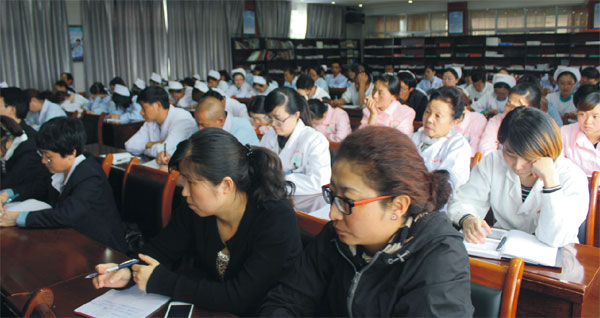 為了提升我院服務管理水平,提高醫(yī)?;鸢踩褂寐?,遏制醫(yī)療費用的不合理增長,維護參保人員的合法權益,促進醫(yī)療保險制度積極、穩(wěn)妥、健康、有序發(fā)展。通過人員培訓、宣傳學習,使各項醫(yī)保政策更加深入人心。我院邀請到自治區(qū)人社廳醫(yī)保處副處長張偉同志于2014年8月25日、26日來我院進行專項培訓。通過培訓大家受益匪淺,效果良好,培訓結束后大家也把自己在工作生活中遇到的困惑提了出來。張?zhí)庨L給予了認真細致的答疑解惑。