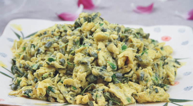 每年春季谷雨前后,香椿樹的嫩芽冒出苔了。幾乎每家每戶都計(jì)劃著要吃一頓香椿炒雞蛋。會(huì)爬樹的,直接爬上枝頭去摘取最嫩的那一簇;菜市上也偶爾會(huì)有人提著籃子叫賣,小小的一束,整整齊齊地?cái)[成一排,邊緣緋紅的葉子隱隱散發(fā)著香氣。香椿炒蛋,曾經(jīng)是最好的下酒菜,用水焯過的椿芽切得細(xì)細(xì)的,拌著蛋漿,在油鍋里炒熟,什么調(diào)料都不用,只下點(diǎn)鹽,那股獨(dú)特的味道就足以讓人齒頰留香。