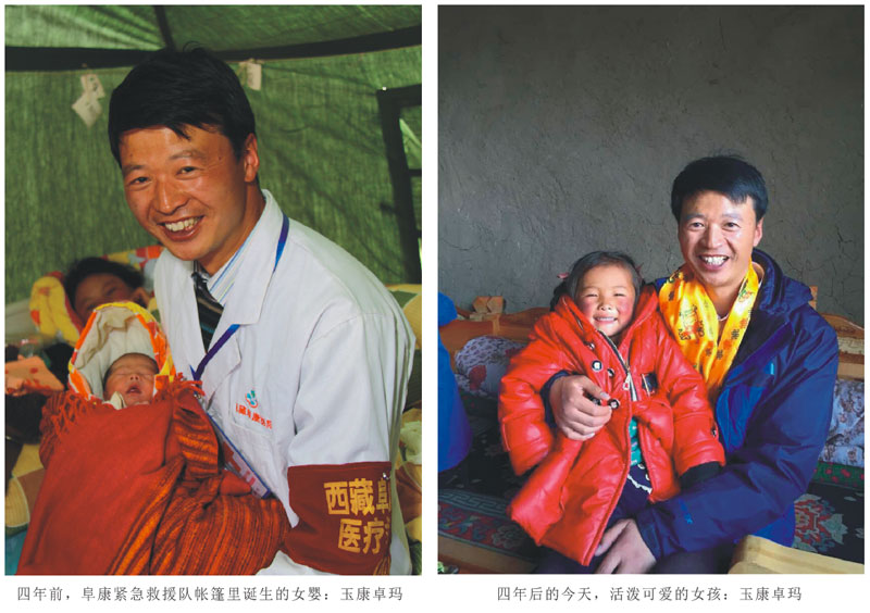 她——21歲的尕松求占,明凈如水的眼睛,高高的鼻梁,在23日零點(diǎn)45分剛剛誕下同樣美麗的女兒——玉康卓瑪。22日下午,在母親扎西永扎陪伴下來(lái)到帳篷醫(yī)院時(shí),她們擔(dān)心過(guò)、焦躁不安過(guò):在這樣簡(jiǎn)陋的地方,孩子能順利生下來(lái)嗎,一出生便沒(méi)有父親的孩子怎么辦?孩子生下來(lái)的那一刻,她大哭了,那種哭不是其他新媽媽的喜悅,而是一種痛哭。地震后的玉樹(shù),4月天里氣候還是那么的惡劣。就在她臨盆時(shí),天刮起了大風(fēng),簡(jiǎn)陋的帳篷又怎能經(jīng)得起如此折騰,他是本次抗震救災(zāi)的民營(yíng)醫(yī)療救援隊(duì)的領(lǐng)隊(duì),他速迅召集在場(chǎng)的隊(duì)員守候在帳篷外,擋風(fēng)遮雨,與惡劣的氣候,與肆虐的風(fēng)雨抗?fàn)幹?,奮力地保護(hù)著帳篷,保護(hù)著帳篷里正在生產(chǎn)的母女倆。取意為玉樹(shù)和阜康吉祥如意的地震寶寶——玉康卓瑪來(lái)到人間,看到女?huà)肽欠勰鄣男∧樀敖o人更多的是欣慰和感動(dòng)。