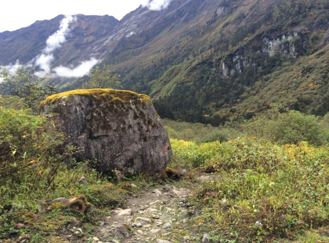 接下來順江而下的兩三個小時的路略微好走些,雖然布滿碎石斷巖,稍微不慎就會絆倒滑摔,但比起在冰天雪地、刺心寒凍的雪風雪雨中行走這已經(jīng)是無比的輕松了。