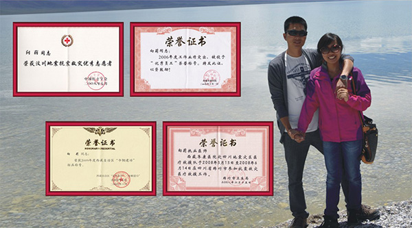 提起老公,她臉上都笑開了花,他簡(jiǎn)直可以算得上是中國(guó)好丈夫。她一直忙于工作,一不小心就到了二十七八的年齡,父母親都開始著急。剛開始沒覺得什么,可身邊的人都很關(guān)心,于是除了上班最大的消遣就是相親了。有時(shí)可能一天有兩三場(chǎng),但最終也都沒有相互看中。她老公也是通過這樣的方式經(jīng)朋友介紹認(rèn)識(shí)的。那會(huì)他剛從軍校畢業(yè),勤奮、踏實(shí)、上進(jìn),兩顆年輕的心就慢慢走到一起,開始憧憬以后美好的生活。原定于2008年5月30日結(jié)婚,可因?yàn)榈卣鹚⒓涌拐鹁葹?zāi),只有將婚禮延期。作為一名共產(chǎn)黨員,他十分理解并給予支持“這是你作為一名醫(yī)生應(yīng)該做的,婚禮推遲沒有關(guān)系,我等著你回來”。在她準(zhǔn)備行李的間隙,老公為她準(zhǔn)備了很多干糧,參加救災(zāi)的很多同事都享受到了這份來自老公的“福利”。